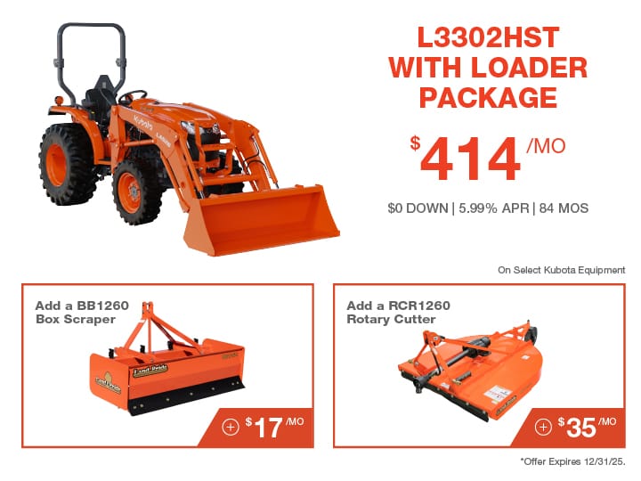 0% APR available or save up to $4,500 on your new Kubota TLB Series!