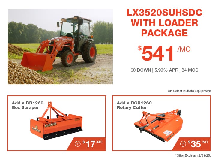 0% APR available or save up to $4,500 on LX Series Tractors!